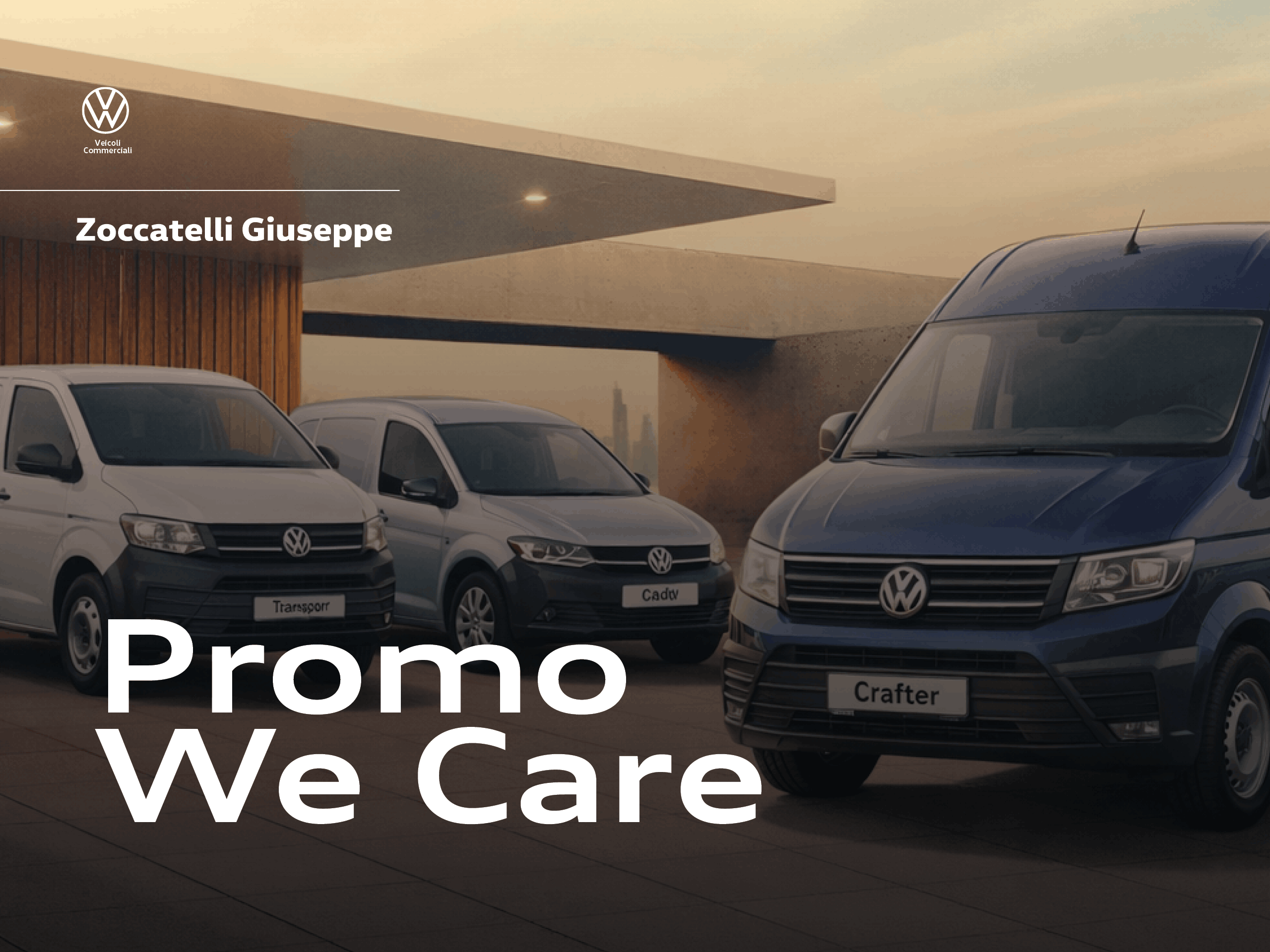 Offerta valida sino al 31-03-2026 solo per veicoli immatricolati con anzianità massima di 15 anni dalla data di immatricolazione; fa fede l’età effettiva del veicolo al momento dell’acquisto del piano di manutenzione. Volkswagen Financial Services è un marchio commerciale condiviso dalle succursali di Volkswagen Bank GmbH (p. IVA 12513730155) per il credito al consumo, per il leasing finanziario e per i prodotti assicurativi e Volkswagen Leasing GmbH (p. IVA 12549080153) per il noleggio e i piani di manutenzione. Il prodotto We Care/We Care Plus è realizzato e distribuito da Volkswagen Leasing GmbH.